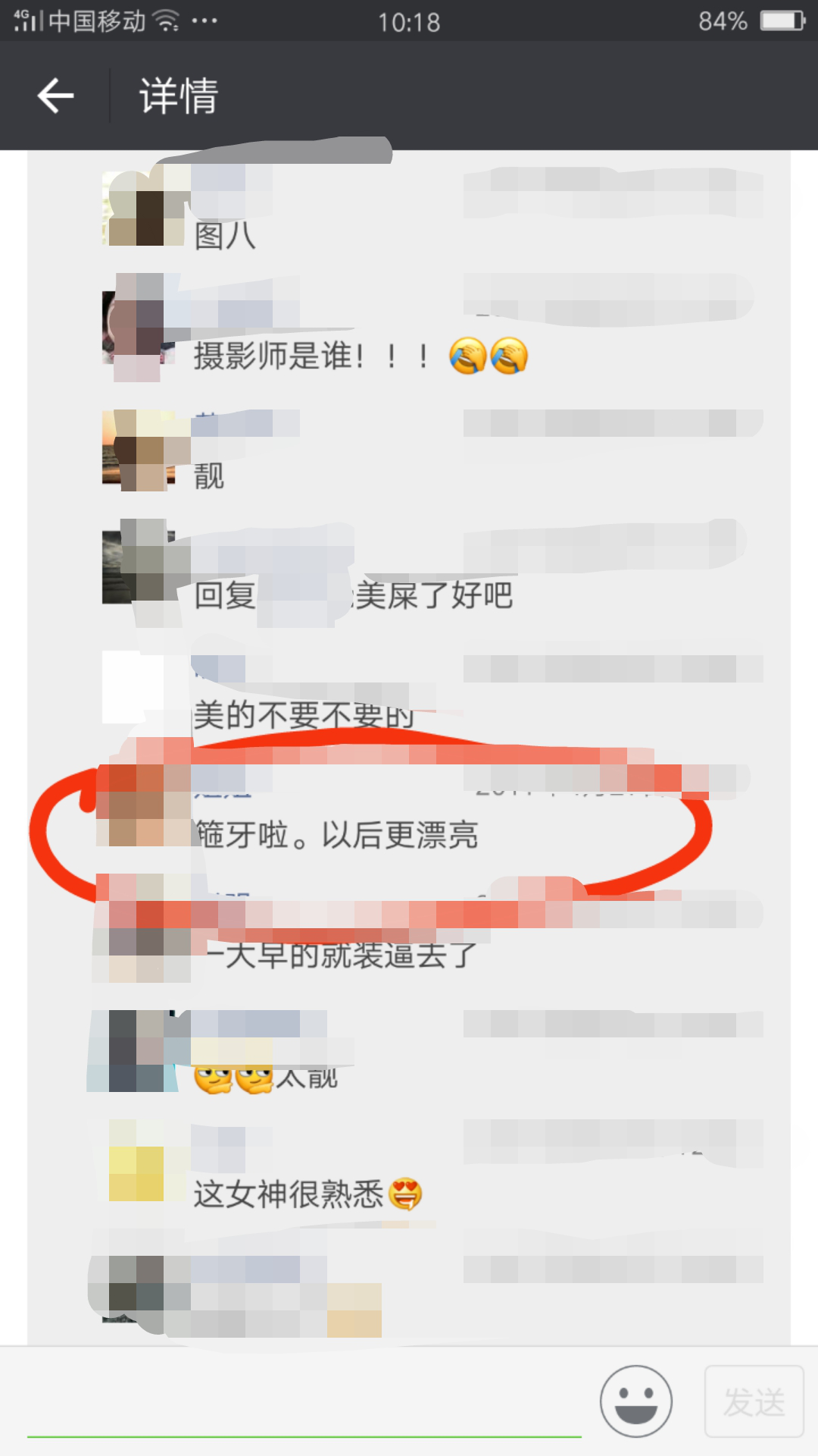 上次那條朋友圈曬照,被人說需要去箍牙,給愛美的我造成了一萬點傷害,嗚嗚嗚……矯牙已經快兩個月,改變還是挺明顯的,牙齒正慢慢變齊整。現在發朋友圈照片,也不用再懼怕別人說我牙齒問題了。而且我都是戴著牙套自拍的,他們都沒發現我正在矯牙呢,有點小竊喜。