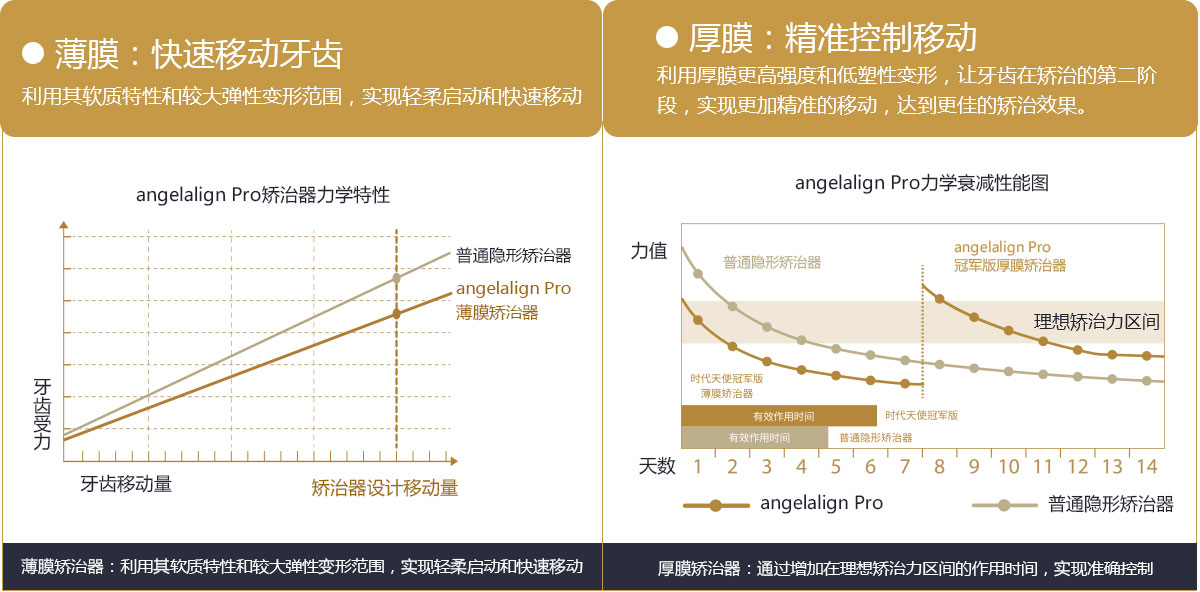 矯治采用兩種不同的厚度的膜片(牙套),發(fā)揮兩種不同膜片的各自優(yōu)勢(shì),在有效的作用時(shí)間內(nèi),矯治效率、矯治目標(biāo)達(dá)成和舒適度方面較普通隱形矯正方式有明顯提升。
